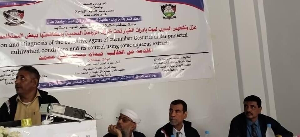 الأردن – [31/01/2026] تحت رعاية اللواء سالم السقطري وزير الزراعة والري والثروة السمكية، وبإشراف جامعة لحج ممثلة برئيس الجامعة الاستاذ الدكتور أحمد مهدي فضيل، وبالتنسيق مع منظمة إيكاردا، ضمن رؤية […]كلية ناصر للعلوم الزراعية بجامعة لحج تمنح درجة الماجستير للباحثة / ربا محمد الصعو