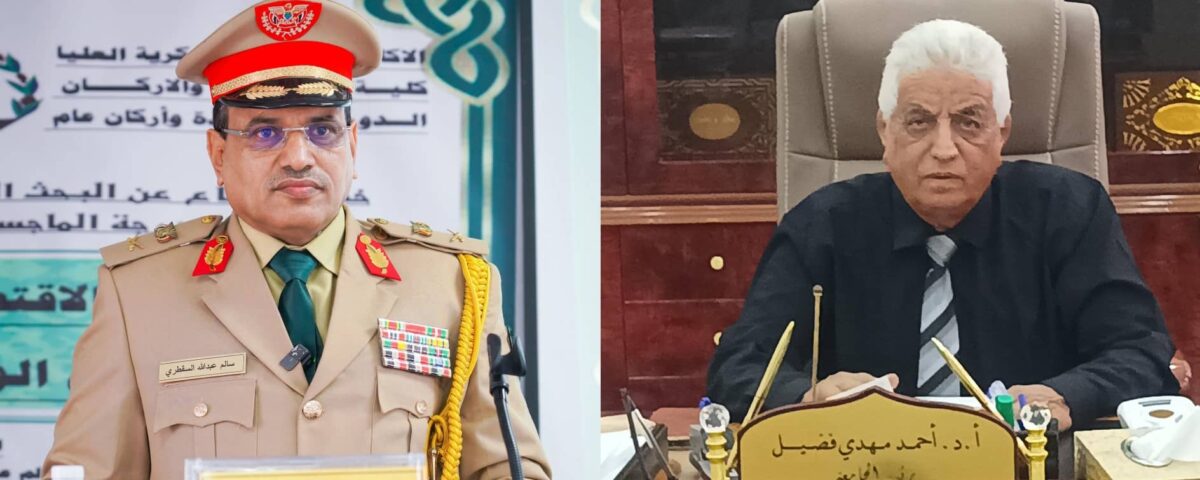 رئيس جامعة لحج يهنئ اللواء الركن / سالم السقطري بمناسبة نيله درجة الماجستير بامتياز من الأكاديمية العسكرية العليا